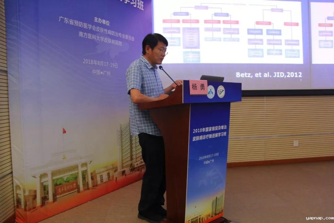 北京大学第一医院的杨勇教授介绍“遗传性皮肤病的研究进展”,杨教授通过个人及团队的研究成果,向学员们展示了如何开展遗传性皮肤病的诊断。