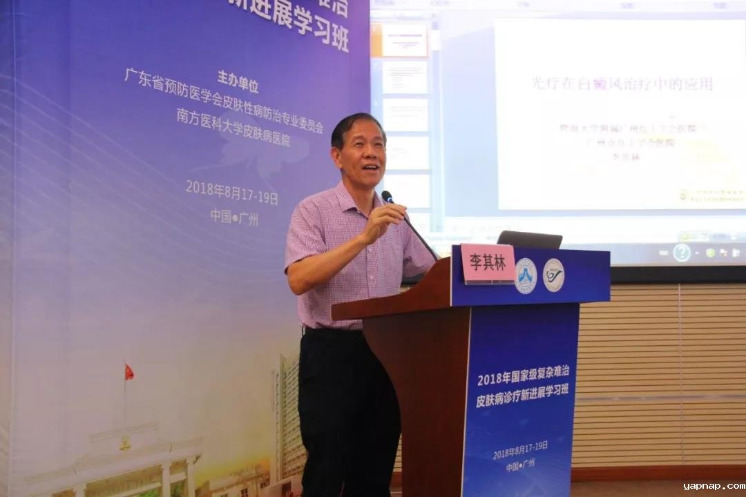 广州市红会医院李其林教授详细讲述“光疗在白癜风治疗中的应用”,学员们通过学习各类光疗对白癜风的作用,开阔了治疗思路。