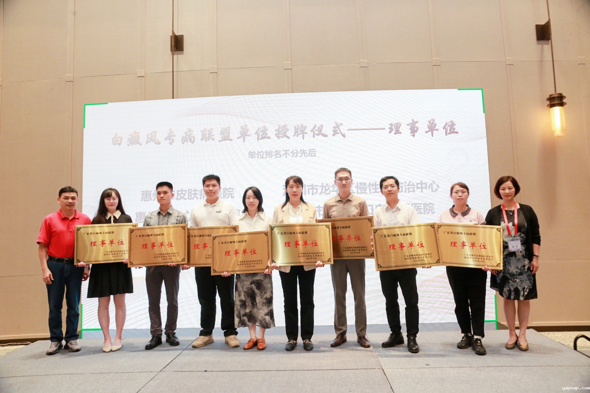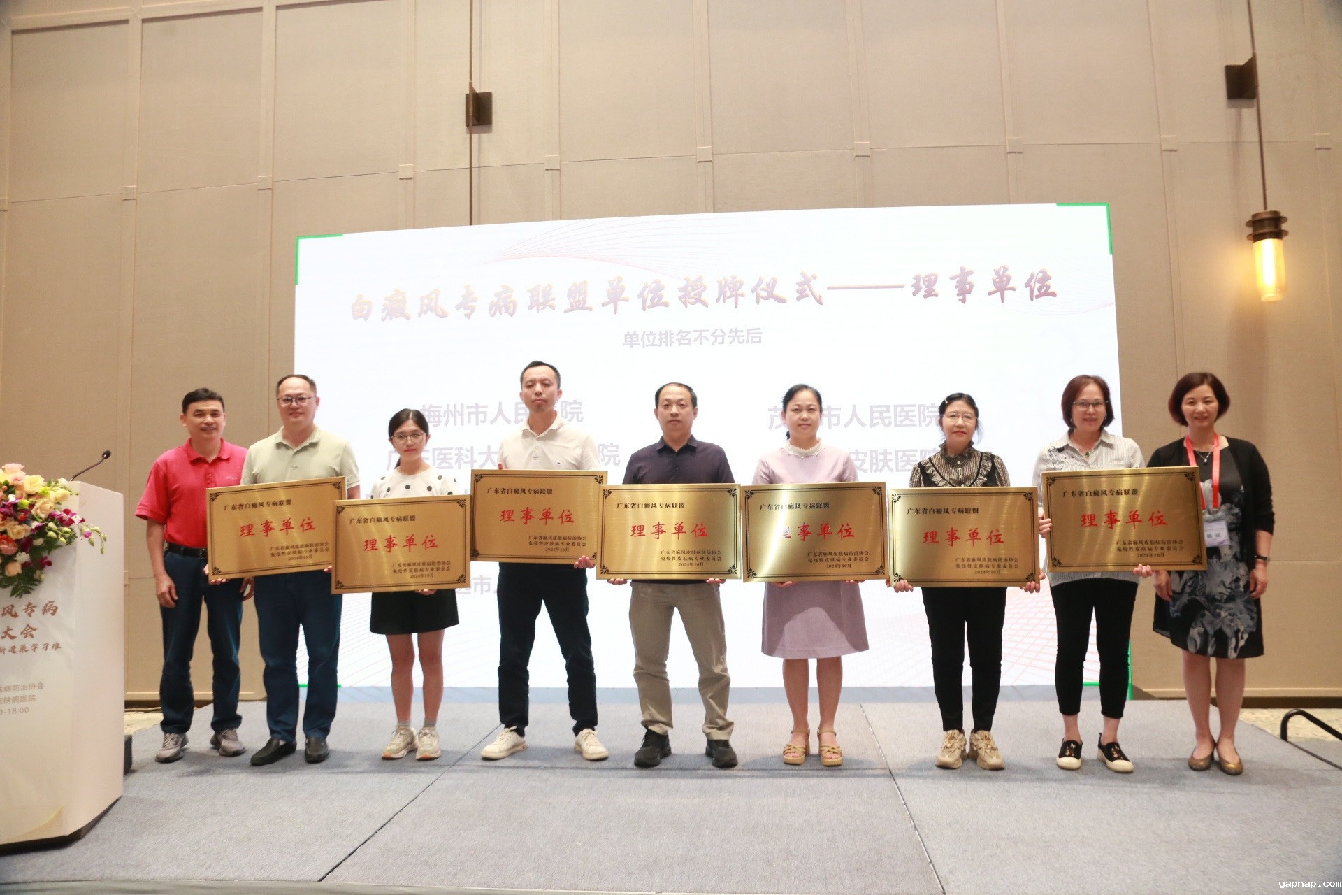 杨斌、黎明、史晓蔚、李俊杰、梁燕华、路涛及廖家等教授共同为白癜风专病联盟揭幕,并为理事长单位、副理事长单位、理事单位颁发牌匾。