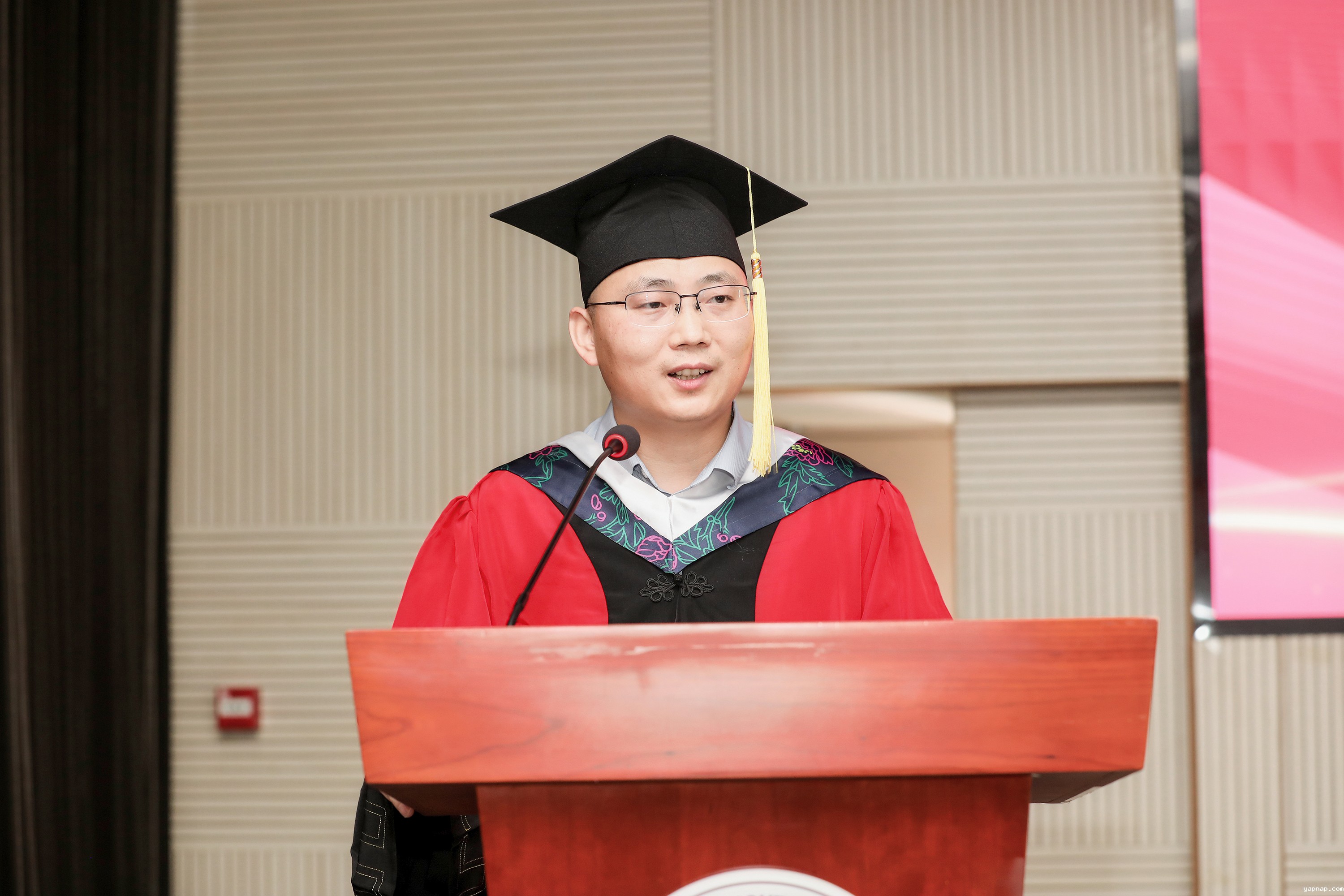 导师代表林志淼教授以风趣幽默的语言,分享了教书育人的宝贵经验。他讲述了导师作为学生成长道路上的引路人所倾注的心血,并对全体毕业生表达了殷切的期望和美好的祝福。